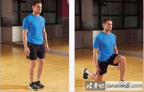 ![]() 2.深蹲 每一个臀部训练计划中一定会包含深蹲练习。在进行深蹲的时候,训练部位直指臀部肌肉。你可以通过增加额外的负重来有效的增加窄小的臀部面积或者通过高重复次数的深蹲来燃烧臀部上松垮的脂肪。 动作分解:自然站立,双手置于体侧,双腿分开与肩同宽。慢慢下蹲的同时将双手弯曲交叉置于胸前,吸气并收紧臀部和下腰腹部。 ![]() 慢慢下蹲至臀部于地面平行,双膝于小腿间的夹角呈90度后保持片刻再呼气的同时站起并还原至初始动作。(双膝下蹲时无论出现什么情况都不可以超过脚尖,腰腹部始终收紧,同时全程由臀部发力而不是由腿部发力 3.箭步蹲 在做箭步蹲的时候,训练动作可以直接作用于大腿正面端和臀部,箭步蹲还可以提高身体核心区域的柔韧以及灵活性。这对于经常久坐的办公室一族来讲是非常有益的。 ![]() 动作分解:站姿 并双手叉腰。右侧腿向前跨出一步,距离大约比两肩的肩距略宽。吸气的同时收紧臀部和下腰部并保持身体躯干正直。 慢慢弯曲双腿至前腿弯曲呈90度,后腿膝关节几乎接触地面后稍稍保持片刻,呼气的同时慢慢站起并向前跨出左腿再重复刚才过程,两腿交叉轮换进行。需要注意的是同深蹲一样,膝关节在下蹲时绝对不可以超过脚尖。 (注:关注健身吧微信公众平台,订阅号搜索 “ 健身吧网 ” 或 “ 点击扫描关注 ”) 相关推荐 保加利亚式箭步蹲(Bulgarian split squat)动作图解教程