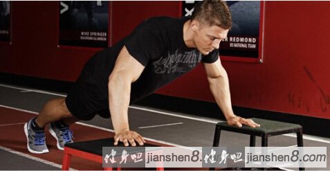 下斜俯卧撑——主要针对胸肌上部与肩肌前部(塑形训练课,教你如何训练胸肌肩肌。) 两脚放在长凳上支撑,手置于地上。下降身体至胸几乎触地后推起。。也可以用健身球代替来增加身躯干肌肉的参与。 提示:上、中、下的倾斜角度从胸肌的下、中、上侧分别来锻炼到整块胸大肌。角度大小的变化侧重点也会偏移。 你可以选择负重进行,特别是上斜俯卧撑你可能会感觉轻松! (注:关注健身吧微信公众平台,订阅号搜索 “ 健身吧网 ” 或 “ 点击扫描关注 ”)